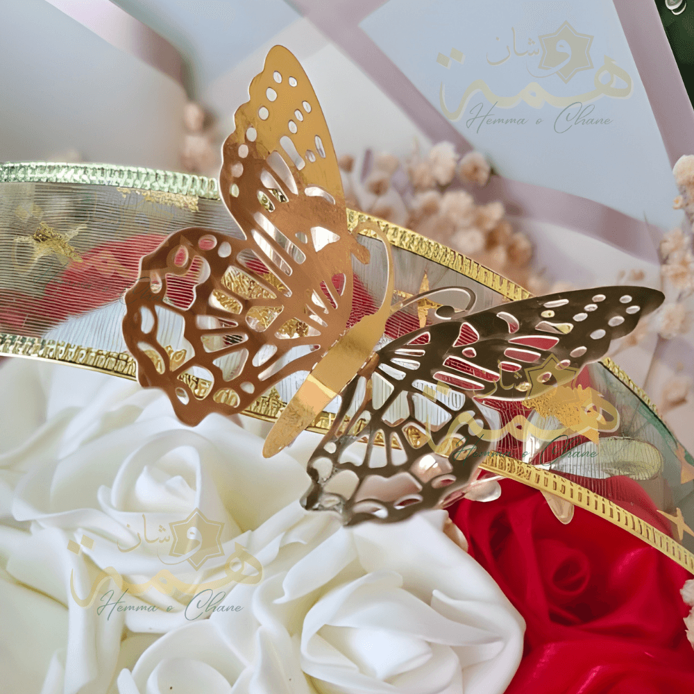 Détails Signature : Agrémenté d’un papillon doré élégant et d’un ruban en satin raffiné.