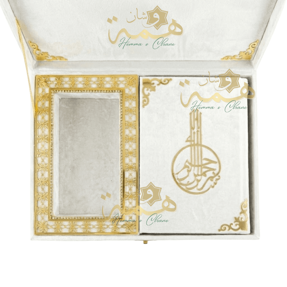 Coffret Coran de Luxe en Velours Blanc & Or – Hemma o Chan